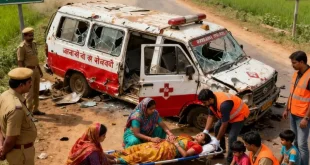 सीतापुर । उत्तराखंड के देहरादून से मरीज को लेकर प्राइवेट एम्बुलेंस से बनारस ले जा रहे सवार शुक्रवार की सुबह दिल्ली-लखनऊ राष्ट्रीय राजमार्ग पर काल के गाल में समा गए। यह दर्दनाक हादसा लखनऊ से लगभग 20 किलोमीटर पहले सीतापुर जनपद अंतर्गत थाना अटरिया में हुआ। हादसे का कारण एम्बुलेंस का टायर फटना बताया जा रहा है। हादसा इतना बीभत्स …