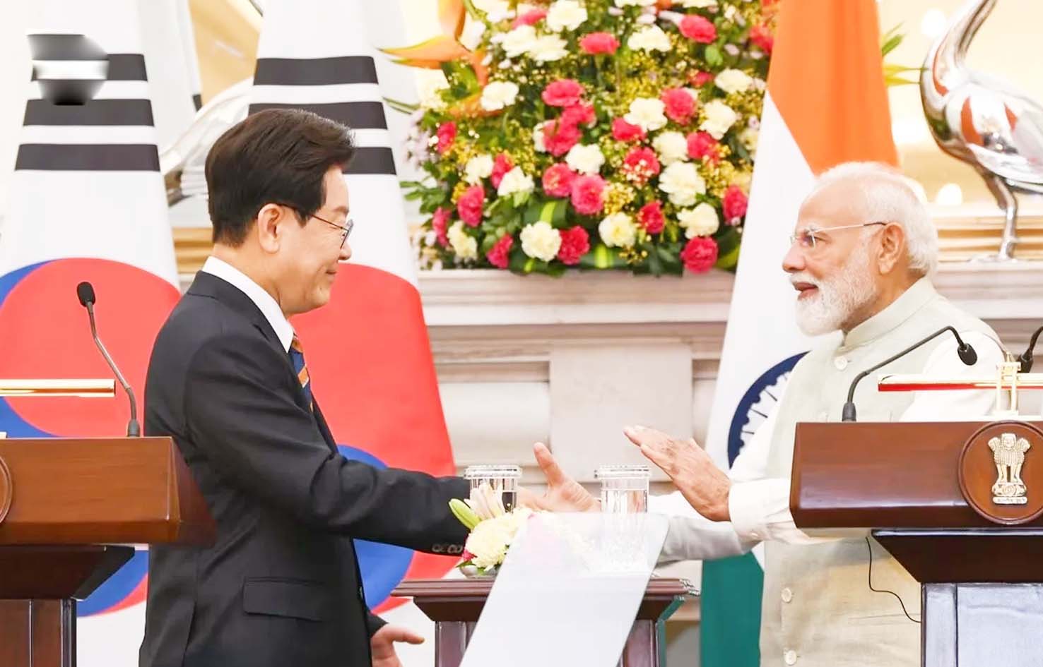 नई दिल्ली: भारत और दक्षिण कोरिया के बीच कूटनीतिक और आर्थिक संबंधों के एक नए स्वर्णिम युग की शुरुआत हुई है। प्रधानमंत्री नरेंद्र मोदी और दक्षिण कोरिया के राष्ट्रपति ली जी-म्युंग के बीच दिल्ली में हुई उच्च स्तरीय द्विपक्षीय वार्ता में दोनों देशों ने अपने व्यापारिक रिश्तों को नई ऊंचाइयों पर ले जाने का संकल्प लिया। इस मुलाकात के दौरान दोनों महाशक्तियों ने साल 2030 तक आपसी व्यापार को दोगुना कर 50 अरब डॉलर तक पहुंचाने का महत्वाकांक्षी लक्ष्य निर्धारित किया है।