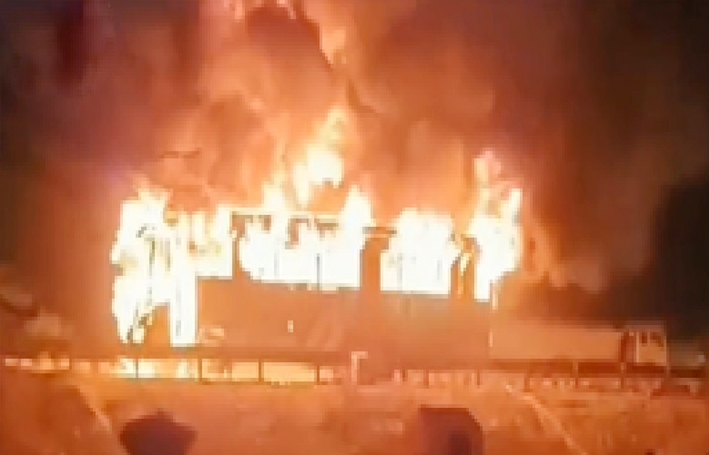 टायर फटने के बाद डीजल टैंक से टकराई बस, भड़की आग