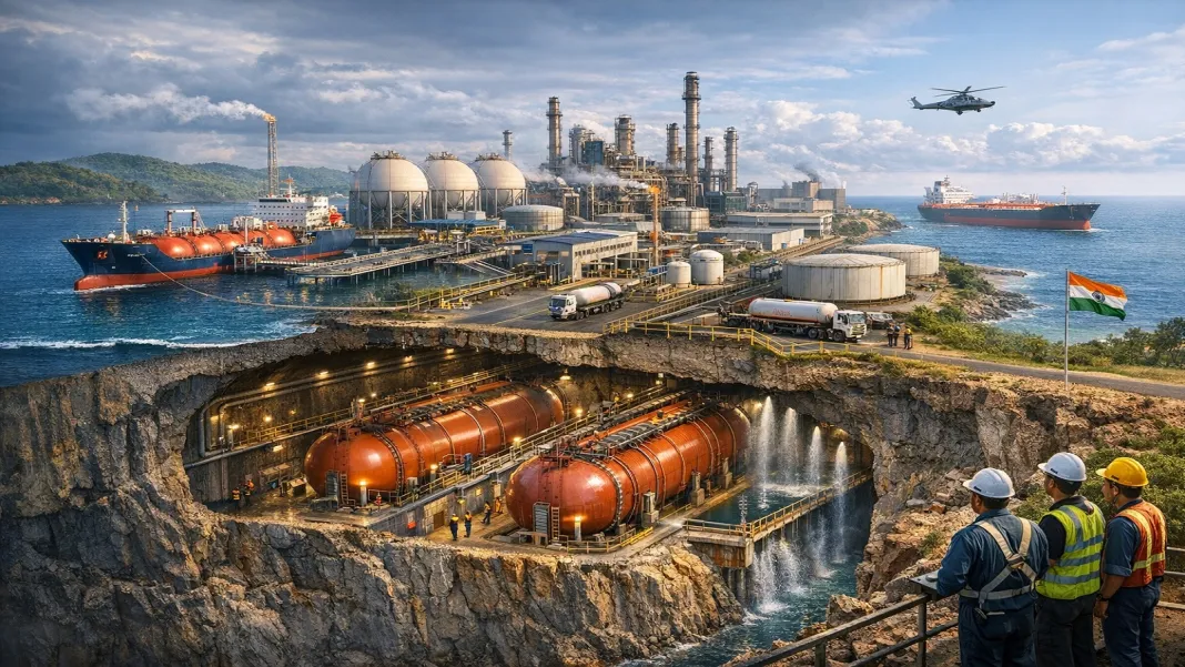 नई दिल्ली/मंगलौर। पश्चिम एशिया (Middle East) में गहराते युद्ध के बाद जब पूरी दुनिया ईंधन की किल्लत और आसमान छूती कीमतों से कांप रही है, तब भारत एक ‘सुरक्षा कवच’ के साथ तैयार खड़ा है। प्रधानमंत्री नरेंद्र मोदी की दूरगामी रणनीति का सबसे बड़ा नतीजा कर्नाटक के मंगलौर में देखने को मिल रहा है। यहाँ दक्षिण एशिया की सबसे बड़ी 80,000 मीट्रिक टन क्षमता वाली भूमिगत एलपीजी कैवर्न (Underground LPG Cavern) पूरी तरह ऑपरेशनल हो चुकी है। करीब 6 महीने पहले सितंबर 2025 में चुपचाप शुरू की गई यह परियोजना आज भारत की ऊर्जा सुरक्षा की रीढ़ बन गई है।